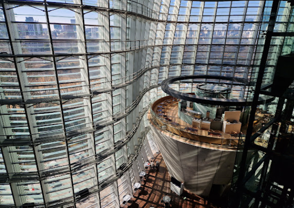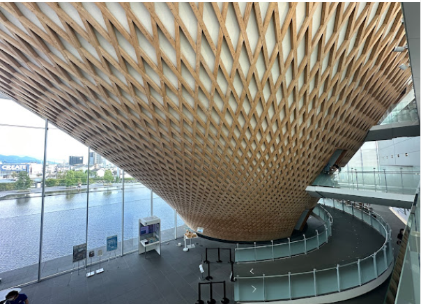 外観もとてもユニークで、波打つようなガラス張りが特徴的です。