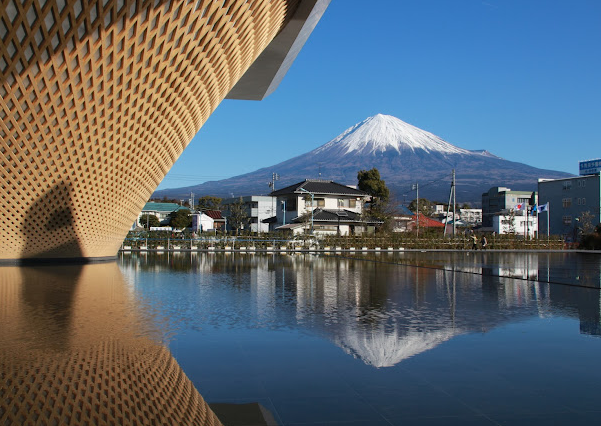 富士山が望める絶好のロケーションに建築されており、周りの景色と調和したデザインが美しいです。