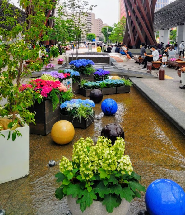 都会の真ん中にそびえる、ダイナミックな造形の「鼓門」がインパクト抜群です。