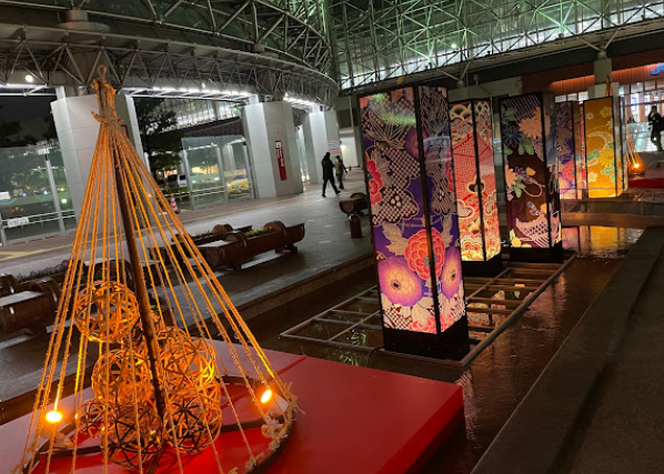 駅構内には土産物店や飲食店などが充実しているほか、各所に伝統的な展示品が飾られています。