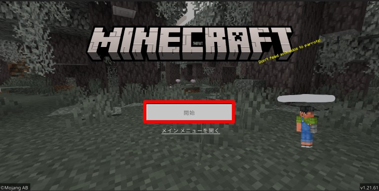 まずは、マイクラのメインメニューの「プレイ」をクリックします。