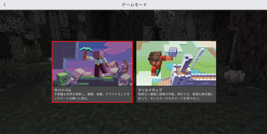 サバイバルモードをえらぶ