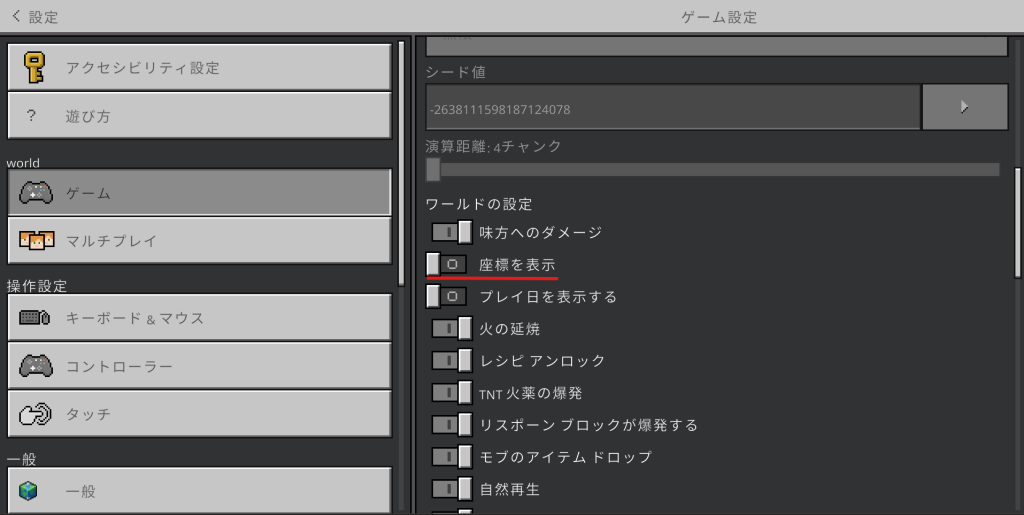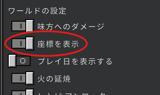 「座標を表示(ざひょうをひょうじ)」というところをさがしてください。